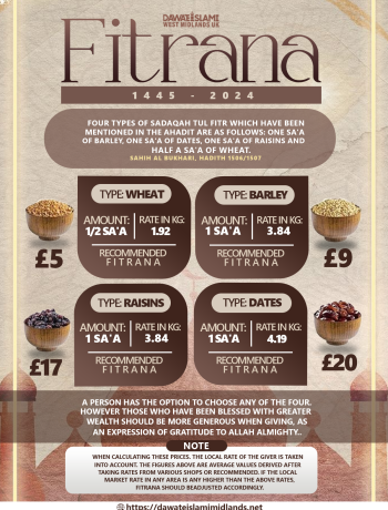 Fitrana, also known as Sadqa tul Fitr, is an obligatory act that all Muslim’s partake in during the Holy month of Ramadan. It purifies our fasts, helps at the time of death and protects us in the grave from punishment. Fitrana is given before Eid prayers begin at the end of Ramadan. (Min Fitrana Amount = 5 POUNDS)
